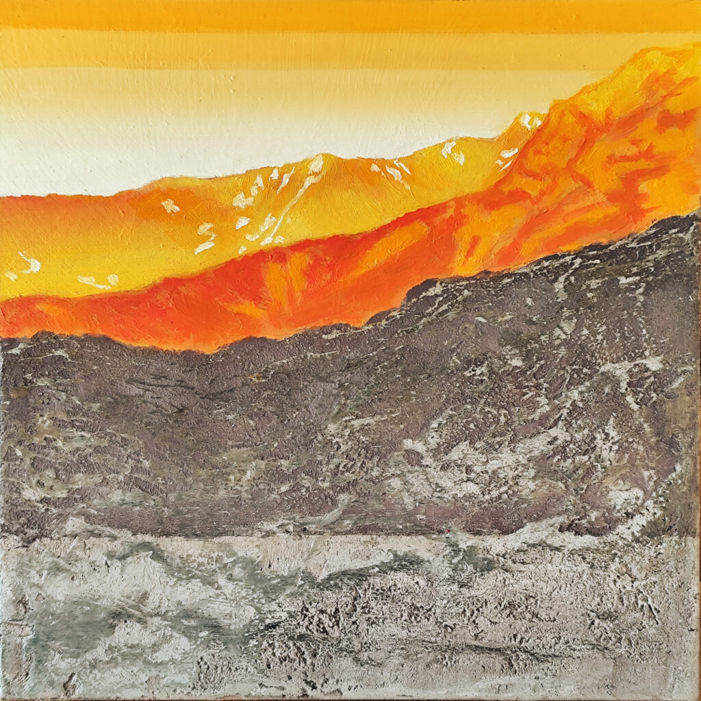 Château de Queribus (Pyrénées Orientales) Huile sur panneau – 70×100 cm Vallon Pont d’Arc (Ardèche) Huile et mixture sur panneau – 80×80 cmLes 2 Alpes (Isère) Huile et mixture sur panneau – 50×50 cmCol de l’Iseran (Savoie) – Huile et mixture sur panneau, 20×20 cmRoute Napoléon (Hautes-Alpes) – Huile et mixture sur panneau, 20×20 cmVallon Pont d’Arc (Ardèche) – Huile et mixture sur panneau, 20×20 cmMassif du Pilat (Loire) – Huile et mixture sur panneau, 20×20 cmAlpes de Hautes Provence – Huile et mixture sur panneau, 20×20 cmPic de Morgon (Hautes-Alpes) – Huile et mixture sur panneau, 20×20 cmMont Cenis (Savoie) – Huile et mixture sur toile 3D, 20×20 cmCol de l’Iseran (Savoie) – Huile sur panneau, 36×36 cmLes 2 Alpes – Huile sur panneau, 36×36 cmAizac (Ardèche) – Huile sur panneau, 36×36 cm